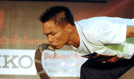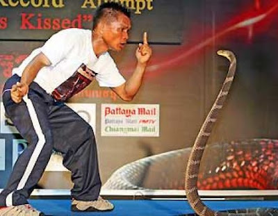Kabar Anehx~Pawang ular Thailand mencium 19 ular kobra penjinak raja yang sangat beracun dalam upaya untuk menetapkan rekor dunia.